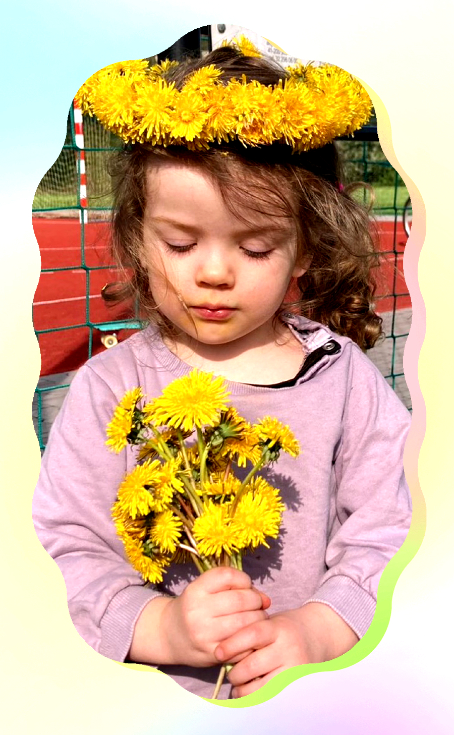 Gdybym była wiosną, chciałabym być tak śliczna i niewinna jak maleńka wnuczka mojej Przyjaciółki. Jak miliony małych dziewczynek, które są świeżutką wiosną, z wiankiem żółtych mleczy na głowie. Urzekają świat dobrocią i prostotą. Każdego ranka otwierają swe wielkie oczy i napełniają nas nadzieją na kolejny szczęśliwy dzień. Jak wszystkie nasze kochane dzieci i wnuki na świecie. Niezależnie czy dopiero stawiają pierwsze kroki czy już uciekają w kolejny etap uniwersyteckiego życia.