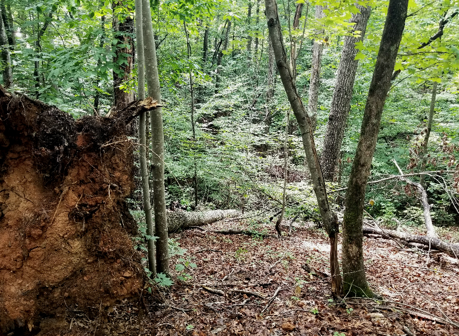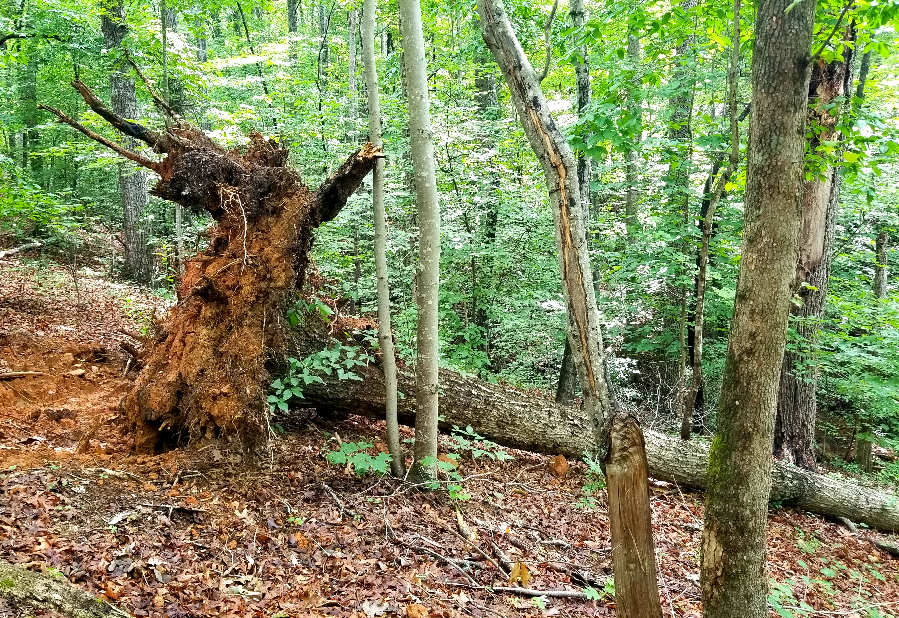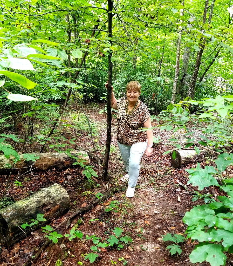 Za domem  napotykam jeszcze jeden pas zieleni i „latające” motylki, trochę pstrokatych grzybków, ale gdy wchodzę na ścieżkę i wspinam się pod górę w głąb lasu, już tylko otacza mnie natura. Wysokie drzewa, ściółka leśna, trochę powalonych pni i starych drzew. I cisza. Cisza. I od czasu do czasu ćwierkanie ptaków. Brzęczenie owadów. To także należy do świata bajki. Choć tego nie zmienia ludzka ręka Ktosia.  Tu życie toczy się według praw natury. Nawet podobno niedźwiedź  kiedyś pojawił się nocą w odwiedziny…