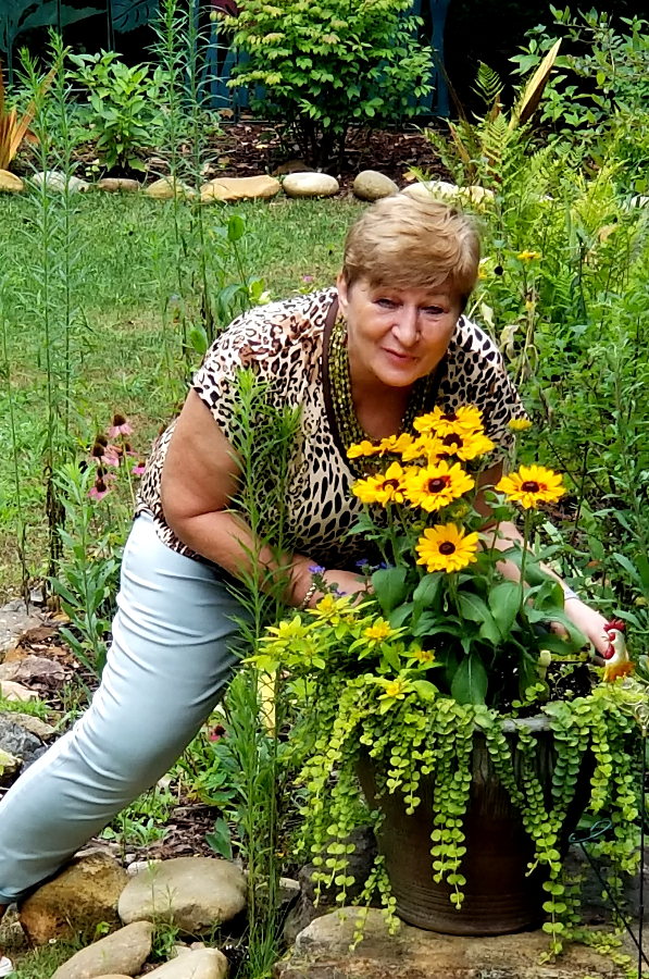 Na tę część ogrodu wychodzi boczny ganek domu. “Ganek poranny” jak nazywa to miejsce mój „bajkowy” Ktoś. Jest tam stolik przeznaczony na poranną kawę, wygodny fotel i piękny widok na kwitnący barwy ogród.