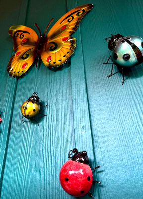 Motyle i biedronki – dekoracja na drzwiach „ogródkowych” mojej Koleżanki