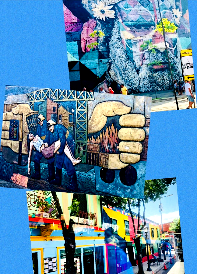 W 2019 roku pojechaliśmy na wspaniałą wycieczkę do Brazylii i Argentyny. Tam, w największych miastach tych krajów, Rio de Janeiro i Buenos Aires aż buchały z wielkich ścian kolorowe malowidła. Wysokiego artyzmu, w niesamowitych kolorach, każdy o silnym przesłaniu. Pozytywnym! Tematyka dowolna i bardzo szeroka. Często dla nas turystów nie odczytywana w pierwszym spojrzeniu, ale przewodnik potrafił opowiedzieć każdą historię kryjącą się w obrazach. Tak – obrazach!  Obraz na gigantycznych ścianach murów, którego przekaz jest prosty, docierający do odbiorcy, poruszający i tematem i wizją. Byłam zachwycona! Pół miasta to kolory, twarze, często zmuszające nas do zatrzymania się na dłuższą chwilę, spojrzenia i zastanowienia się. To ułamki wydarzeń i historia współczesna miast.