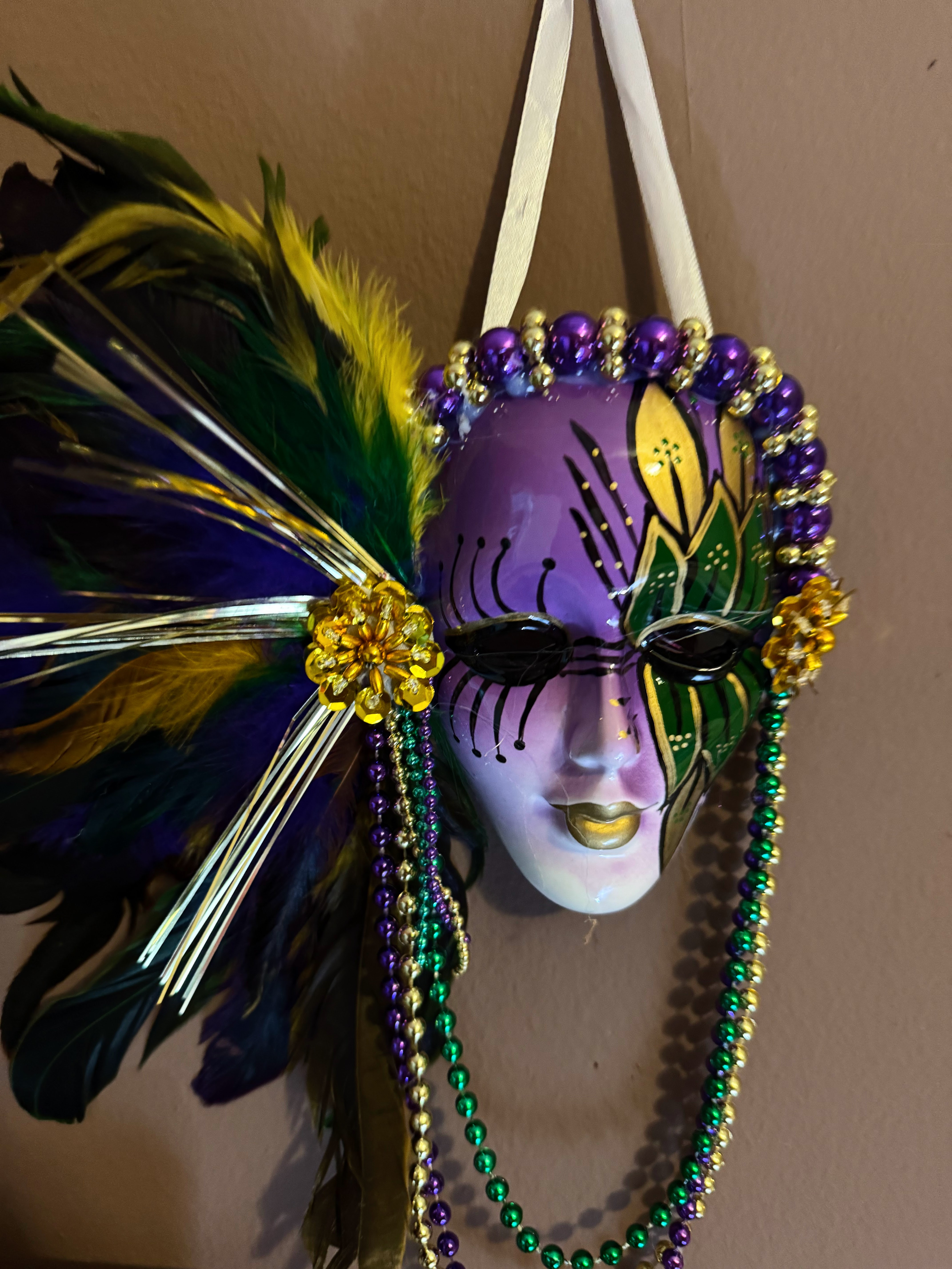 W Nowym Orleanie byliśmy jeszcze cztery razy. W różnych porach roku i przy wielu okazjach. Kiedy piszę ten tekst jestem po świeżej wizycie w NO – tym razem w szaleństwie karnawałowych parad Mardi Gras, bardzo wymyślnie i niezwykle kolorowo poprzebieranych turystów i ogromie dekoracji.  Tym razem – już bez takiego „obłędu w oczach” kupiłam nową maskę na ścianę i bardzo ładny magnes/maskę. Tradycji stało się więc zadość. 😀