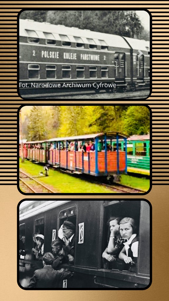 Właściwie to nie lubię pociągów… Dość wcześnie jak na czasy, w których się urodziłam, w mojej rodzinie mieliśmy samochód. W porównaniu do dzisiaj ulice były puste, wszędzie chodziliśmy na własnych nogach, czasem jeździliśmy czerwonym albo niebieskim tramwajem. Nikt nie lubił ulic ze zbyt głośno dzwoniącym odgłosem… tramwajów. Tak bardzo przeszkadzały, że ledwo dało się prowadzić rozmowy. Autobusy, stare i nowe dojeżdżały do każdego małego miasteczka, a nawet do wsi. Jakoś podróżowaliśmy.