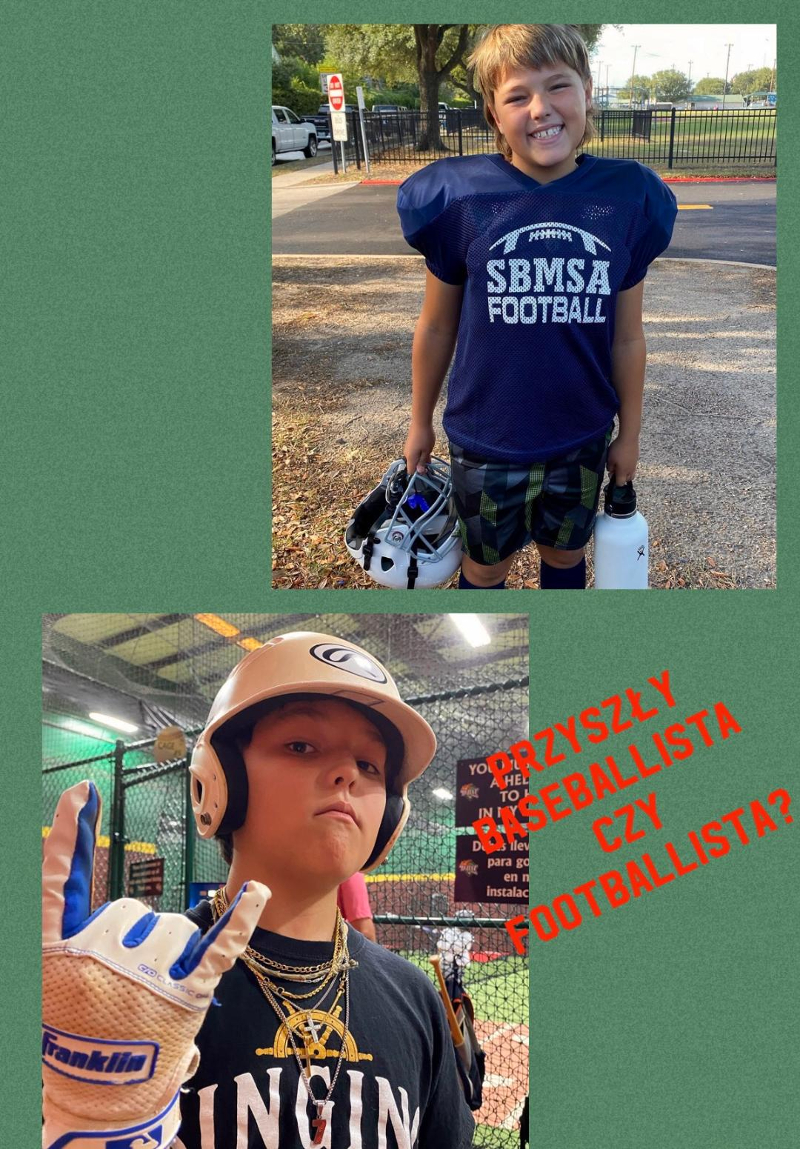 Chase – najmłodszy z naszych wnuków, syn Jacka, nie poszedł w ślady taty, tylko z wszystkich sportów, które próbował jako dziecko, najbardziej uwielbia baseball i football i już teraz (ma tylko 10 lat!) zaangażował się, jak na swój wiek, bardzo poważnie w regularne treningi.