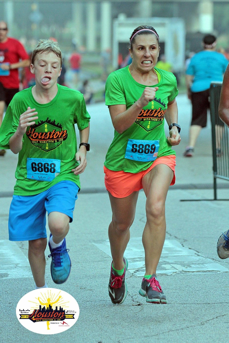 Pierwszy pół-maraton Christopha w Houston, który przebiegł razem z Mamą