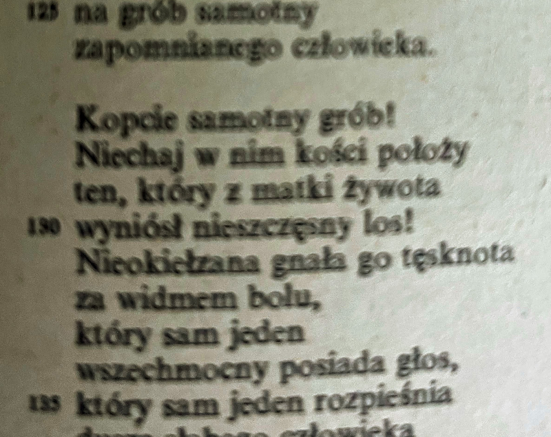 Fragment Hymnu Kasprowicza „Święty Boże, Święty Mocny” z którego pochodzą słowa: kopcie samotny grób..